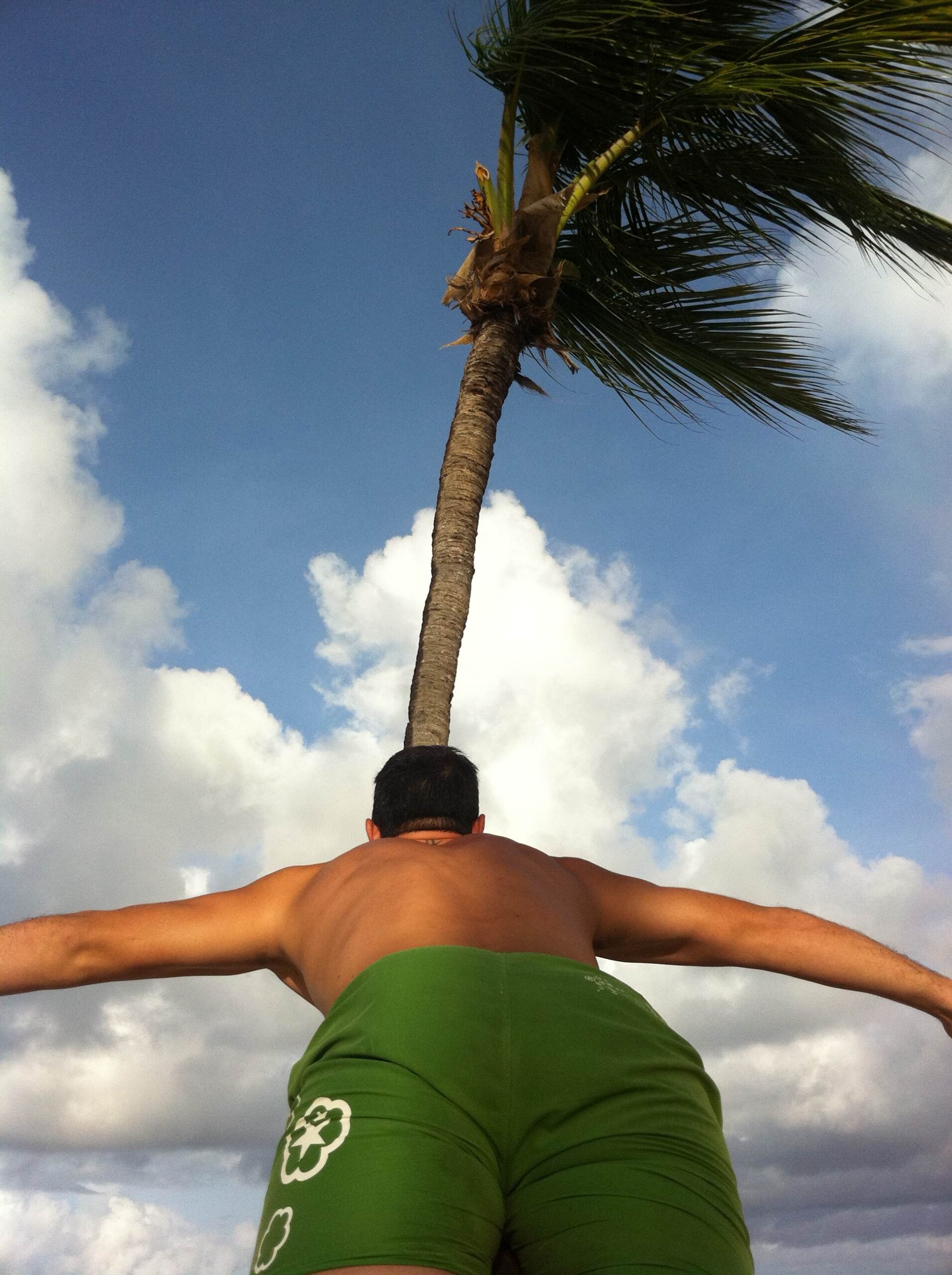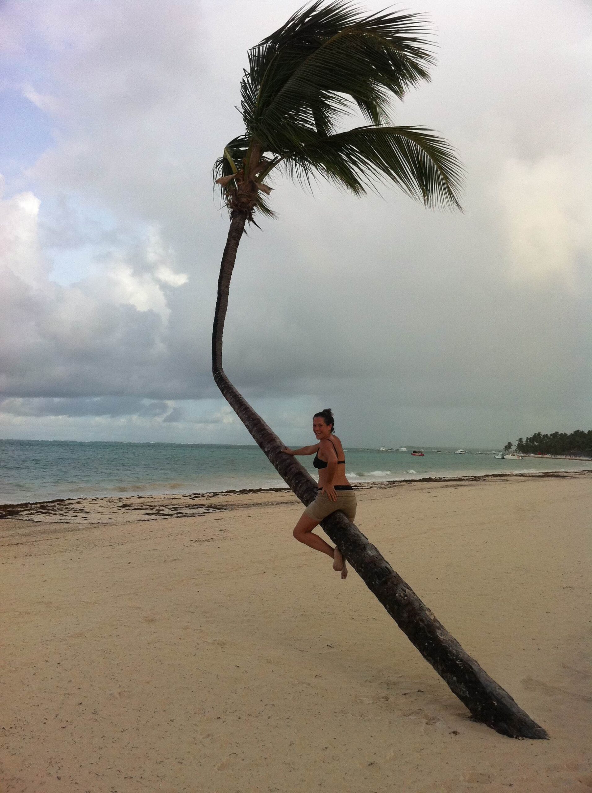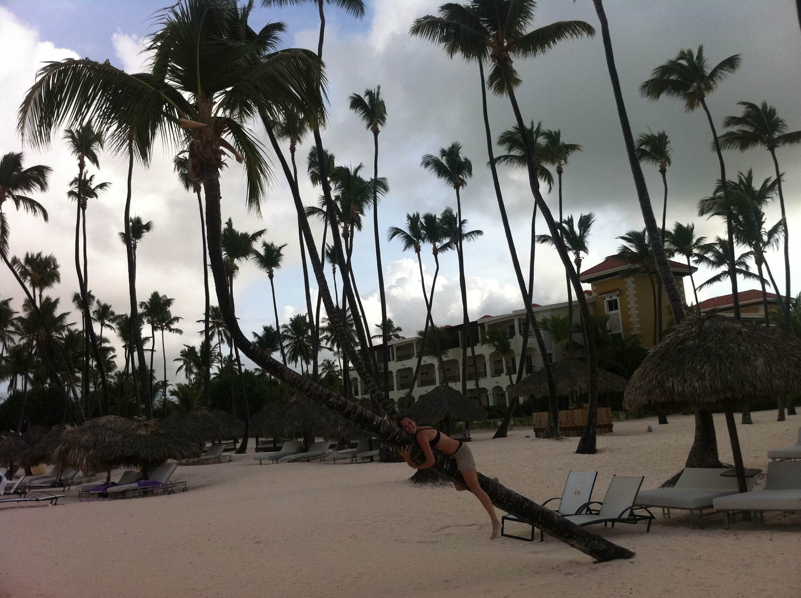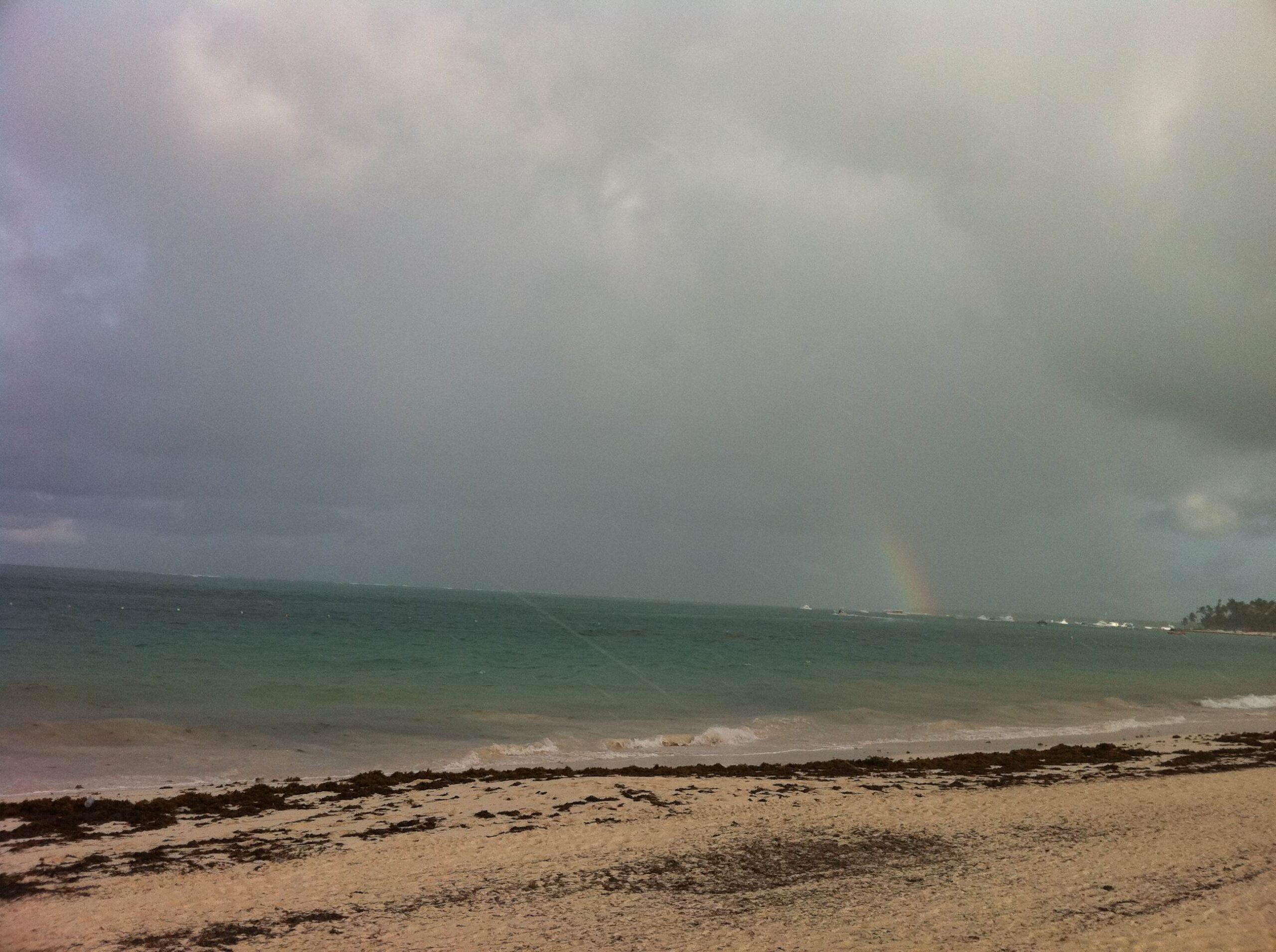 Aprovechamos mi hermana y yo para darnos un paseo por la playa, esa playa blanca que te molesta a los ojos cuando la miras fijamente al darle el sol, esa arena que no quema al andar, y llena de tumbonas por los Hoteles Resort que te encuentras a tu paso. De repente nos llueve, pero para en menos de un minuto, así es el trópico, y sale el arco iris.