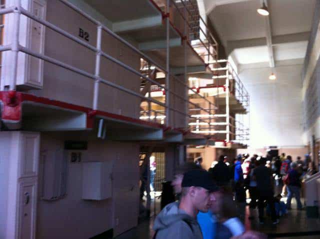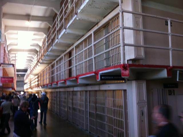 Termina el tour de la prisión de Alcatraz, otro objetivo histórico cultural tachado, todos salimos contentos con lo visto, estos americanos se organizan muy bien y como ya dije en post anteriores, cuando hacen una cosa…lo hacen bien: la audio guía es una muy buena herramienta, mientras estas escuchando la guía, te va llevando paso por paso por toda la prisión, te guía cual corderito y te ordena las pausas…son 45 minutos en los que no se escucha un alma durante el tour, a pesar de los cientos de personas que se podrían encontrar en el interior, una buena manera también a través de la audio guía de que la gente no vaya parloteando en tal lugar.