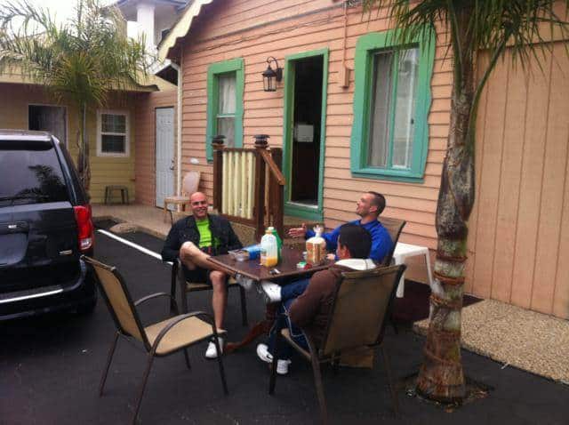 Y para finalizar la noche…y este largo día de travesía desde que empezara la mañana en Cayucos, a mas de 300 km de San Francisco, en Río…un lugar de muy buen ambiente (no del que estáis pensando), con un patio interior donde se encuentra toda la vida del lugar, y donde descubrimos un juego muy entretenido Israel y yo: una mesa larga, un jugador en cada punta…en cada extremo hay puntuaciones del 1 al 3 y tu misión es lanzar con la fuerza suficiente unos discos que resbalan por toda la mesa y que deben de quedarse dentro de la franja de puntuación…no se dos dio mal.