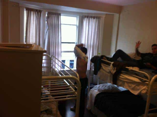 Dejamos los coches momentáneamente en la misma puerta del hostel, pagamos un parquímetro para la ocasión durante unos minutos, y sucede algo curioso…de las dos habitaciones que nos dan, la 303 y la 309, cuando abrimos la habitación de esta última nos damos cuenta de que hay gente ya dentro y en una litera ya hay gente…¿que es esto?, bajo a recepción y se quedan blancos cuando les cuento la película…no pasa nada…ahora tenemos la 308. E Isra y Mike hacen mudanza de colchones.